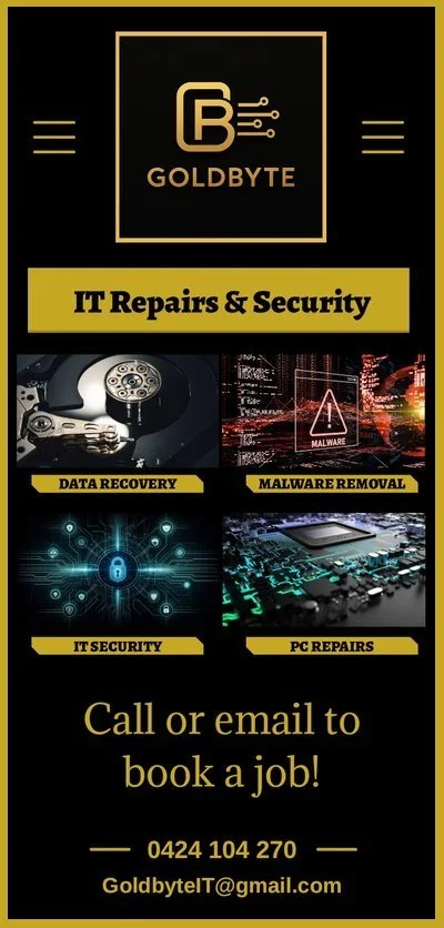 Contact Us Get in touch to organize a job or get a quote on a repair! Phone: 0424 104 270Email: GoldbyteIT@gmail.com